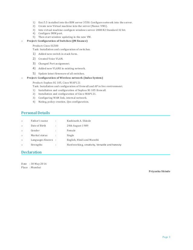 Resume For Vmware Profile
